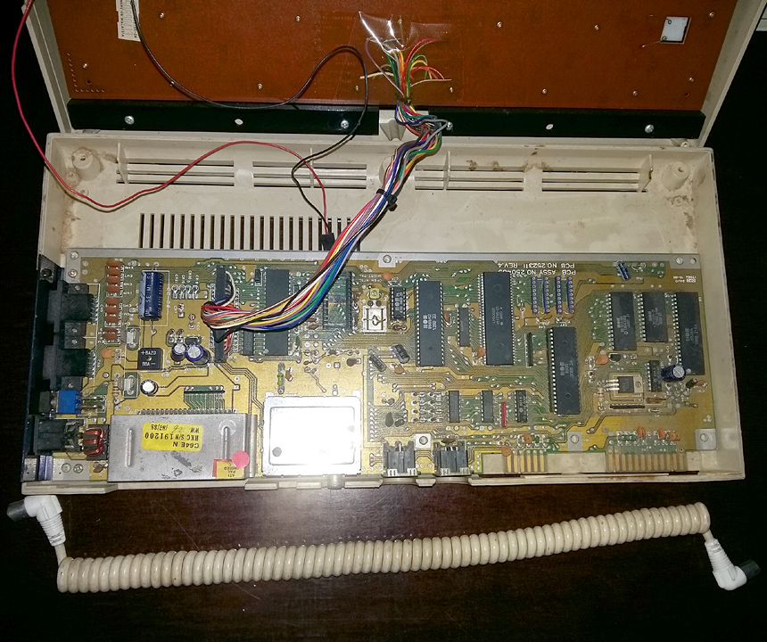 - | Mit Printerportstecker und proprietärem Mehrzweckkabel modifizierter C64-DTV |